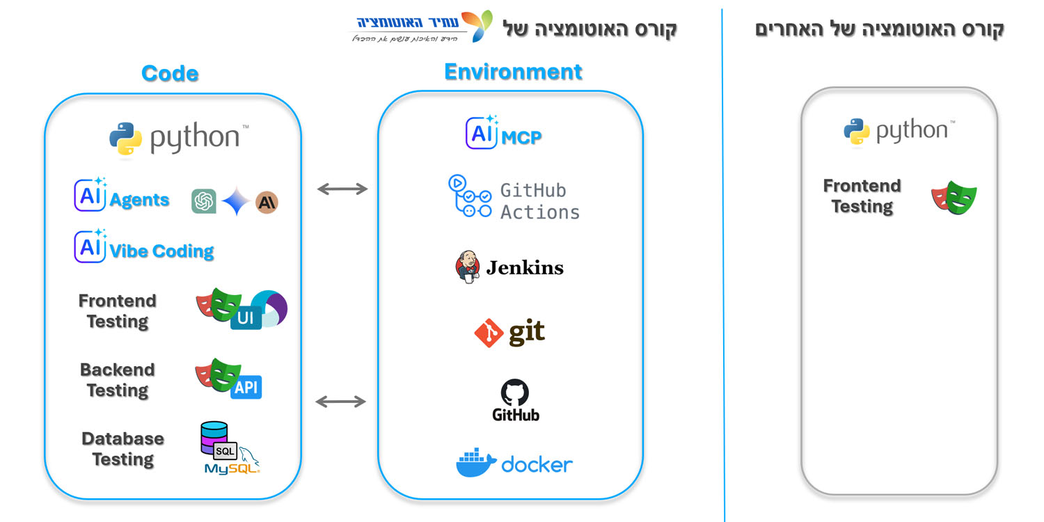 קורס ה-AI Toolbox for Future QA הינו קורס מהפכני וחדשני, הראשון מסוגו בעולם, שמכין את בודקי התוכנה והאוטומציה לעידן הבינה המלאכותית – עם כלים מתקדמים, טכנולוגיות פורצות דרך ויכולות שישנו את הדרך שבה אנו בודקים ומפתחים.